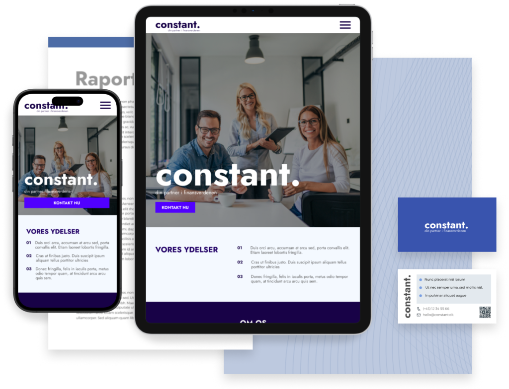 Din identitet er summen af, hvordan din virksomhed ser ud, lyder og opfattes. Det handler om at være genkendelig, professionel og troværdig – både visuelt og i det, du siger.